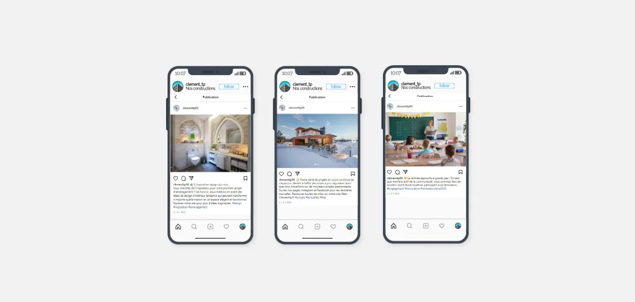 - J’ai élaboré une stratégie de contenu et conçu des visuels impactants pour les plateformes clés comme Facebook et LinkedIn. L’objectif était de mettre en avant les réalisations de « Clément TP » (photos de chantiers avant/après, focus sur les équipements, interviews de l’équipe, témoignages clients, conseils techniques). Ces posts sont conçus pour engager la communauté locale et illustrer le savoir-faire de l’entreprise.