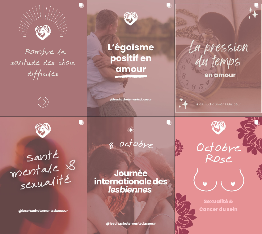 Templates personnalisés qui respectent l’identité visuelle et permettent à Aurélie de communiquer régulièrement sur des sujets intimes avec justesse et bienveillance.