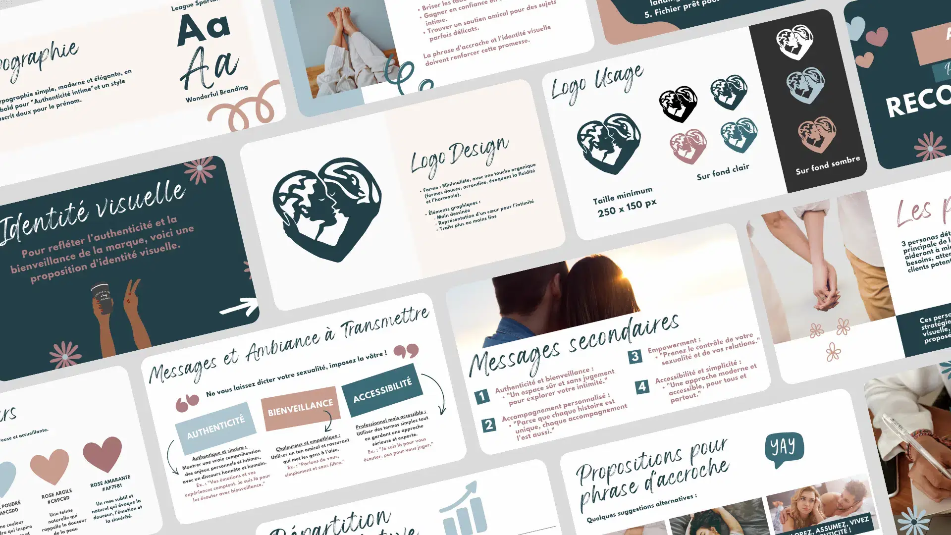 Aurélie cherchait une identité visuelle qui sorte des codes trop cliniques de la psychologie classique. Elle voulait quelque chose de chaleureux, féminin et rassurant, qui invite à la confidence et brise les tabous autour de la sexualité et des parcours PMA.