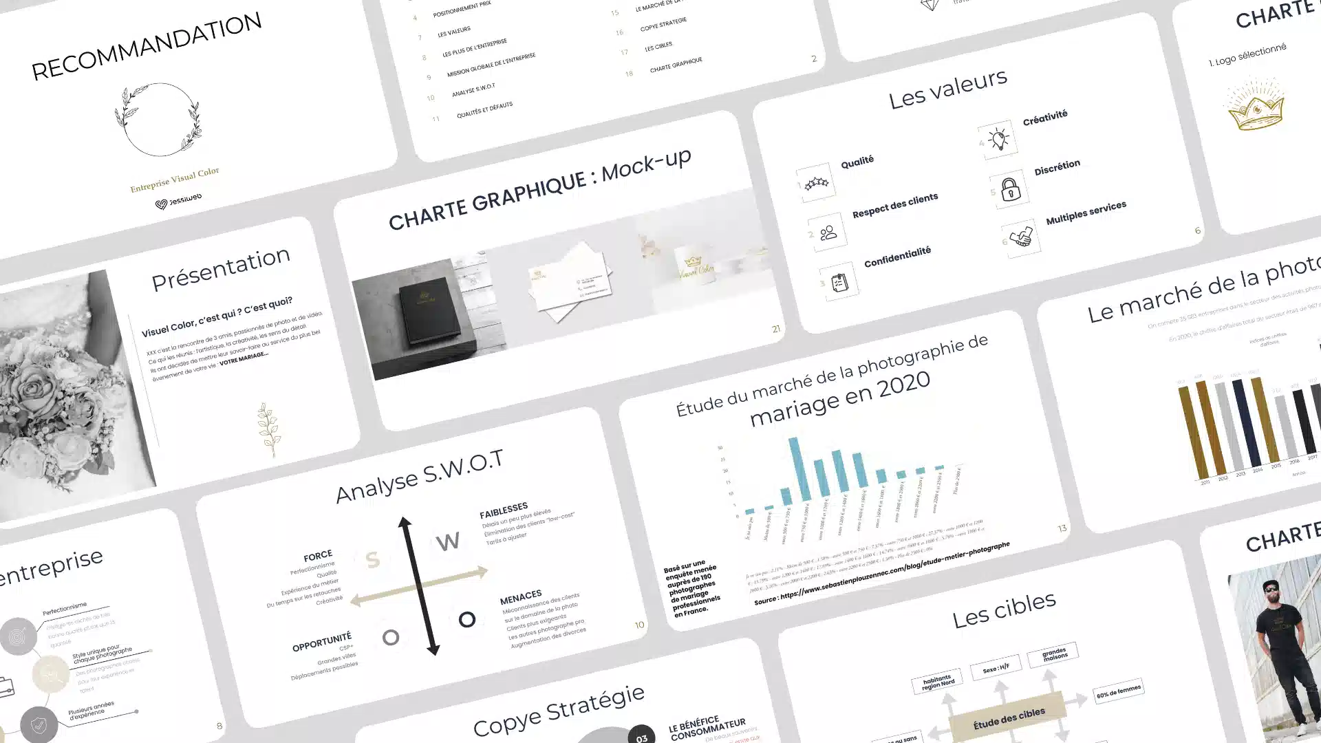Un univers visuel inspiré des codes du luxe et du prestige, parfait pour séduire une clientèle exigeante à la recherche de photographes professionnels pour immortaliser leur mariage.